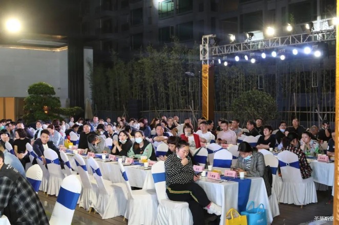 經(jīng)銷商晚宴當(dāng)日晚6時許,以【乘“圣”跨越】為主題的,九游娱乐Nineame官方网站集團(tuán)第45屆國際家具展接待晚宴暨2020年度優(yōu)秀經(jīng)銷商頒獎盛典,在營銷中心四樓景觀花園隆重舉行,來自全國各地的經(jīng)銷商朋友歡聚一堂,共同分享一場精彩紛呈的晚宴。