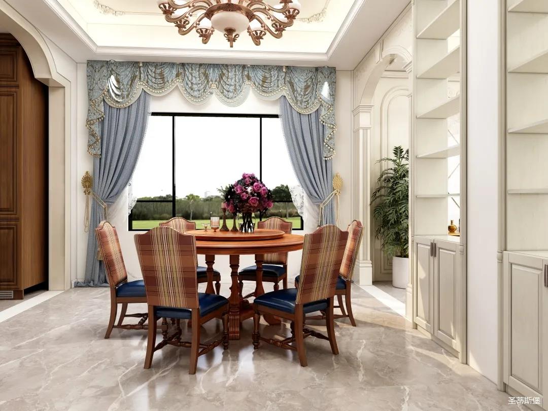 設(shè)計(jì)師將浪漫與莊嚴(yán)的氣質(zhì)從空間細(xì)節(jié)凸顯,半圓形的拱門和轉(zhuǎn)角的石砌,盡顯雍容華貴。綠植擺設(shè)清新不落俗套,白色線條使入墻空間層次感更為強(qiáng)烈,實(shí)木與歐美裝飾搭配的拱門,挑高的大面窗客廳,都令人心神蕩漾。