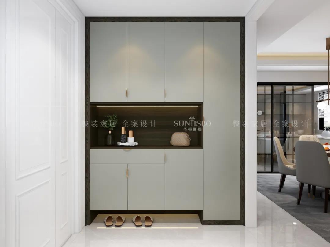 玄關(guān)吸納了極簡(jiǎn)精華,采用極簡(jiǎn)線條將入戶玄關(guān)模塊化分割,完成了一場(chǎng)精簡(jiǎn)入戶的儀式感。煙熏色與淺灰色彩有序排列出一個(gè)個(gè)性的極簡(jiǎn)入戶空間。