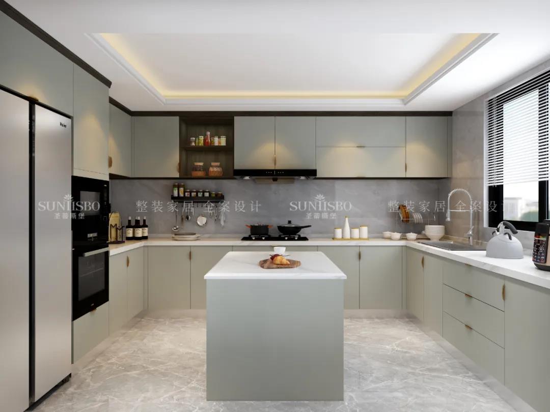廚房的淺灰色調(diào)與明媚的自然光線重合,由空到滿,完成了一場(chǎng)空間與質(zhì)感的展示。案臺(tái)上擺放的居家生活用品,充斥著溫馨的生活氣息。質(zhì)感櫥柜線條秩序排列出廚房空間的簡(jiǎn)約主題感。日光穿過(guò)百葉窗,將生活空間梳理的溫柔且愜意!