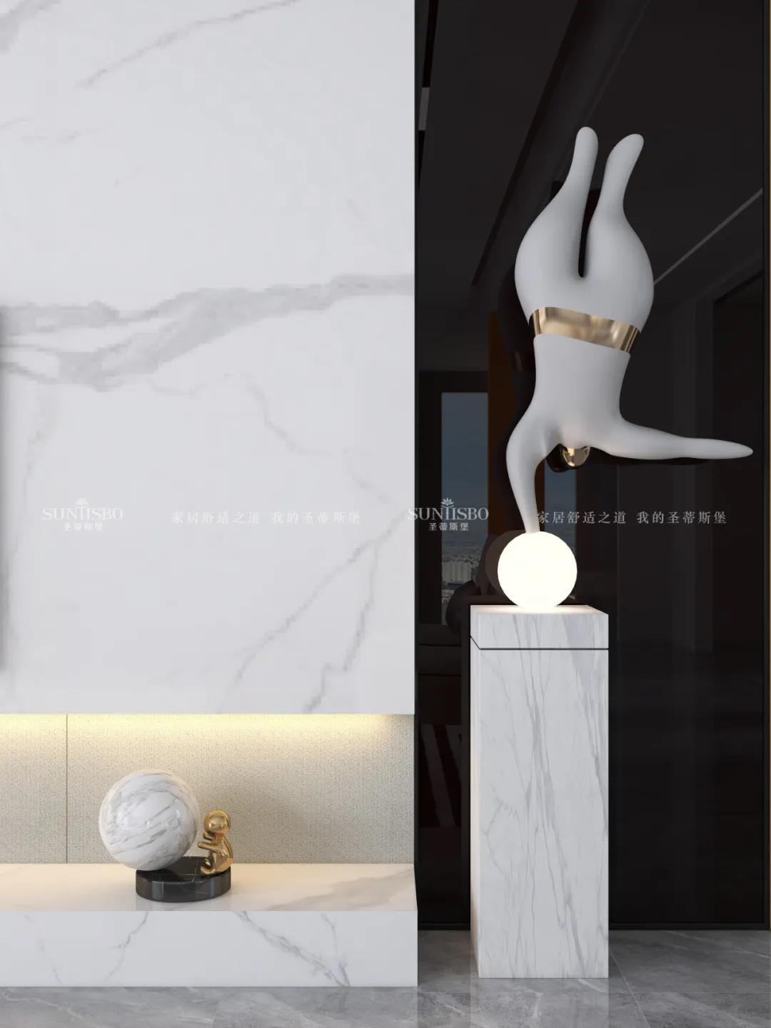 優(yōu)雅的米白色調(diào),沉穩(wěn)中帶有溫柔清新的自然感,以探尋最舒適的視覺體驗為出發(fā)點,將色彩深淺融合,以達空間平衡??臻g線條疏密有序,平行延續(xù)出流暢輕巧的線性方程,以流動的姿態(tài),達到簡約且堅固的空間效果。