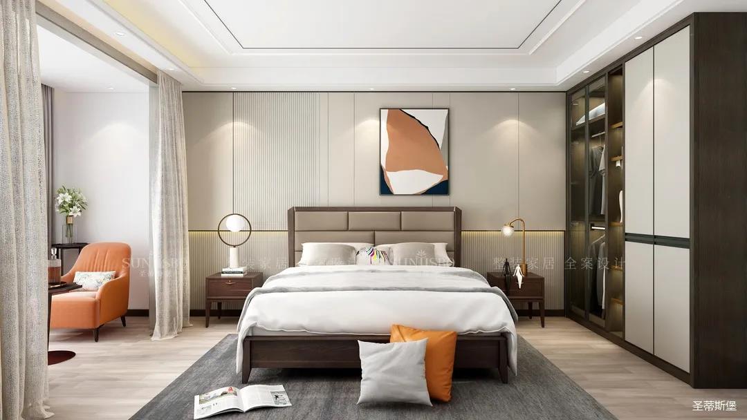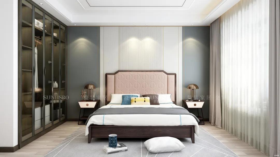 次臥床頭是現(xiàn)代感十足的格柵設(shè)計,簡約精致又頗具深度朦朧感。豎條紋的格柵還能起到拉伸視覺的作用,主觀上提高了空間的開闊感。定制衣柜則根據(jù)空間整體的簡約調(diào)性,將開放式與隱蔽收納五五分,散發(fā)出高貴沉穩(wěn)的優(yōu)雅氣質(zhì),和生活品味形成了恰到好處的平衡。