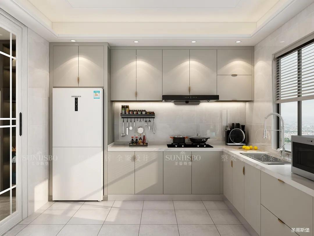 客餐廳、廚房的極簡風格和諧統(tǒng)一,鑒于現(xiàn)代家庭中日益增加的廚房電器設(shè)備,設(shè)計師在用廚動線上頗為用心,L型的動線將生活習慣自然的融入整體家居之中。保持著中性簡約的調(diào)性,運用溫潤的實木材質(zhì)與剛毅的線條,營造出摩登時尚的氛圍。將廚房區(qū)域自然融入整體家居之中。保持著中性簡約的調(diào)性,用溫潤的原木材質(zhì)或是圓潤的曲線線條,平衡空間的冷峻。