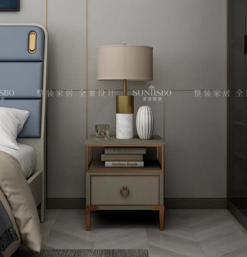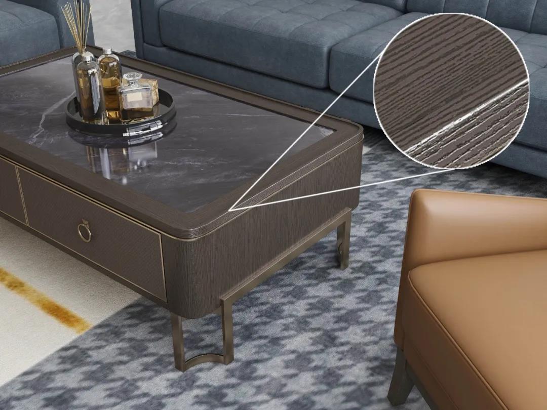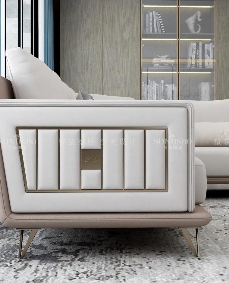 洛斯系列在現(xiàn)代時(shí)尚的基礎(chǔ)上還增加了許多輕奢的金屬元素,金屬元素在輕奢風(fēng)里毋庸置疑的存在。為什么人喜歡戴耳環(huán)、戒指、項(xiàng)鏈等首飾?為什么衣服、鞋子、包包上都能看到金屬元素的身影?從時(shí)尚圈到家居界,金屬元素憑借其獨(dú)特的質(zhì)感以及由內(nèi)散發(fā)的高級氣質(zhì),有著強(qiáng)大的包容性,提升風(fēng)格格調(diào),增添時(shí)尚氣息。運(yùn)用在家居中可成為整個(gè)空間的亮點(diǎn),成為時(shí)下家居裝修的潮流趨勢,深受大家的喜愛。但是目前市面上采用金屬鑲嵌工藝的多數(shù)是在板木結(jié)合的基礎(chǔ)上,難度相對簡單易操作。在洛斯系列里,是在實(shí)木的基礎(chǔ)上進(jìn)行金屬鑲嵌工藝,要求精準(zhǔn)度非常高,誤差不得超過0.5毫米,不然就會對不齊。在洛斯系列中,桌子的四角與腿部、柜類門板,沙發(fā)腿部,茶幾支架,餐桌臺面,床品外框等都將金屬恰到好處地融入到空間的每個(gè)角落,讓空間擁有輕奢的高級感,提升空間的質(zhì)感。將優(yōu)雅謙遜的都市精致感全面呈現(xiàn),讓裝修冷中帶暖、沉靜精致,也向人們展示了一種精致的生活方式,更為整個(gè)家注入靈動氣息。