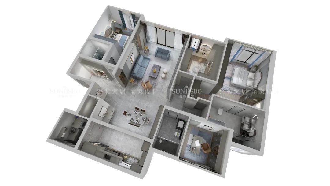 恒大四季上東|147㎡| 時(shí)尚簡奢|沈陽本案例是一套面積147㎡的三居室,位于遼寧省沈陽市,業(yè)主是一位從事繪畫工作者,深研過空間與色彩的關(guān)系,經(jīng)過與設(shè)計(jì)師的溝通交流后,選定了沉靜的灰色調(diào)來表現(xiàn)空間的寧靜與放松。