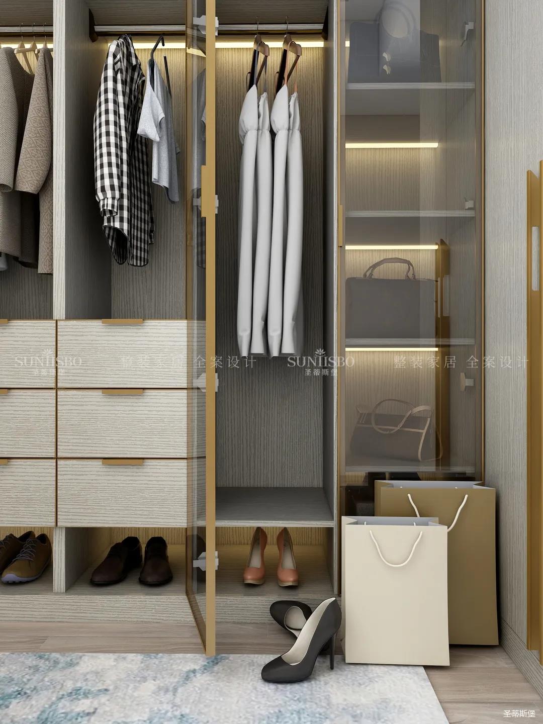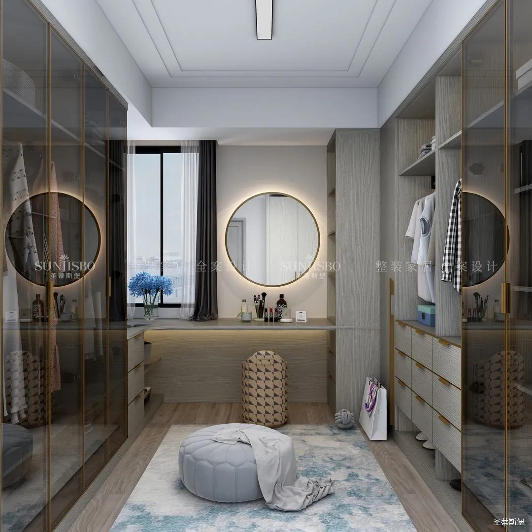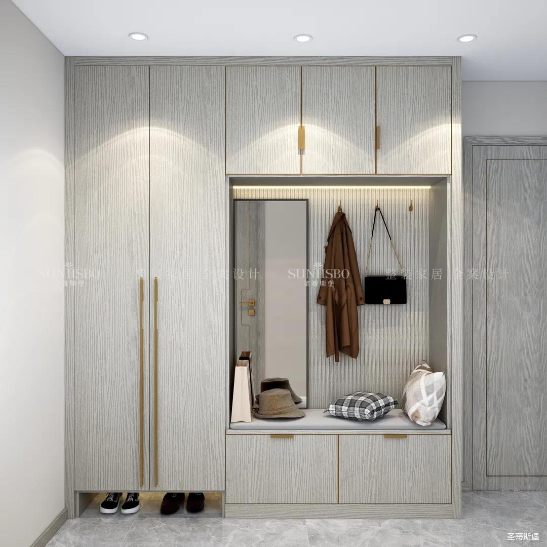 進(jìn)入玄關(guān)區(qū)域就能感受到房主對(duì)時(shí)尚風(fēng)格的偏愛,實(shí)木元素與簡奢金屬的碰撞,既有對(duì)材質(zhì)的甄選,又有現(xiàn)代簡奢的品質(zhì)感。穿衣鏡、換鞋凳、收納柜等藏漏有序的分區(qū),將屋主的生活歸納的井井有條。