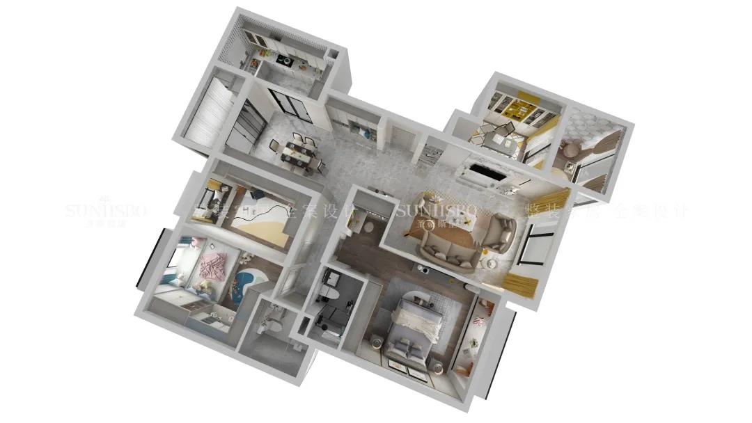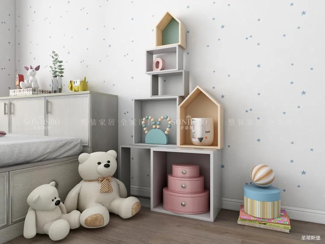 兒童房摒棄了傳統(tǒng)榻榻米的呆板與嚴(yán)肅,延續(xù)主臥輕奢雅致的空間氛圍,以木質(zhì)為主材質(zhì),利用面板的線條帶來視覺上的延伸,將童趣與理性相融表現(xiàn)兒童應(yīng)有的學(xué)習(xí)氛圍與生活習(xí)慣。開放式展示區(qū)應(yīng)用藍(lán)色點(diǎn)綴,再次強(qiáng)化了空間專屬兒童的活躍格調(diào),也呈現(xiàn)了設(shè)計(jì)師在材質(zhì)與色彩運(yùn)用上的精細(xì)與專業(yè)。