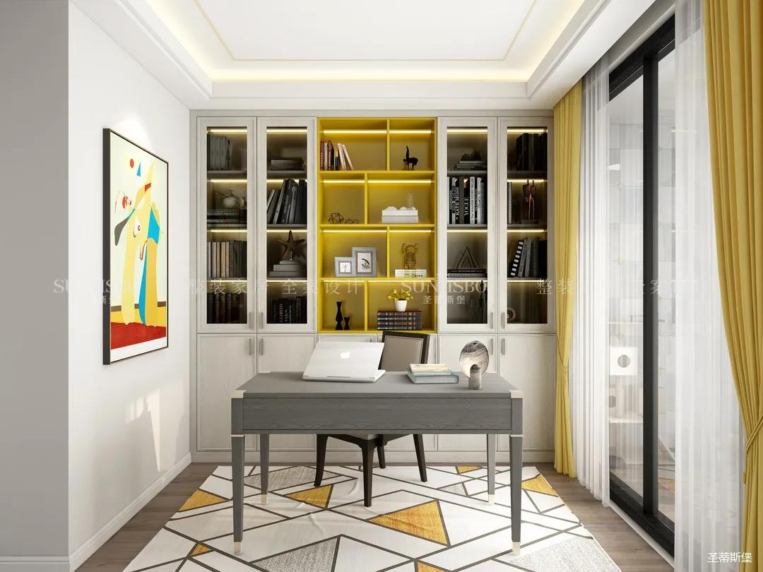 在書房中,目之所見,從空間到陳設(shè),色調(diào)由淺及深,在硬朗與柔軟、明亮與暗啞之間合理切換,精心雕琢出層次感。時(shí)尚高雅的色調(diào)變化和家具的紋理在線條的交錯(cuò)下,相互交匯出美學(xué)與功能的書房空間,簡(jiǎn)單的臨窗觀景,讓身心即刻得到放松。