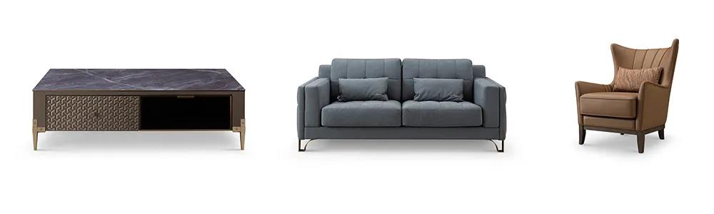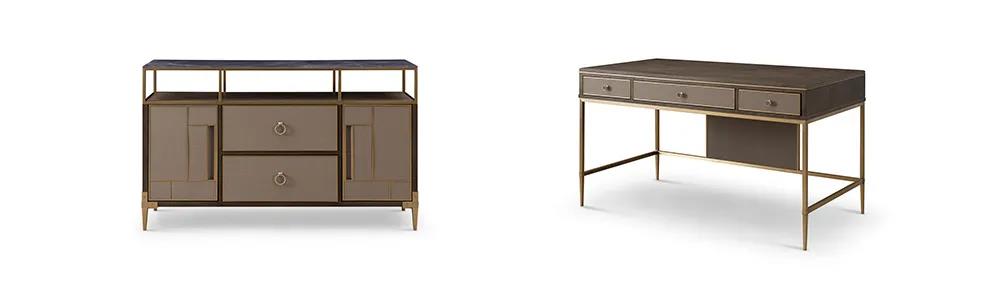 餐桌以簡潔干練造型為主,高級百搭的灰色調,軟包真皮,金屬鑲嵌的細節(jié),打造出悠閑奢華、優(yōu)雅精致的風格,讓家的味道從一日三餐中抵達內心深處。