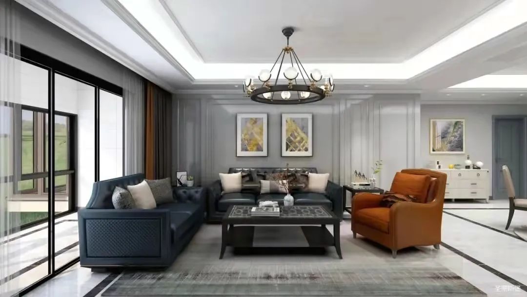 沙發(fā)皮色采用深淺不一的咖色拼接。讓空間顯得精致有質(zhì)感。在沙發(fā)的扶手邊框、底座,融入了愛(ài)馬仕橙,讓空間多了些靈動(dòng)的生活氣息。搭配簡(jiǎn)約單椅,給人一種視覺(jué)上的高級(jí)感。